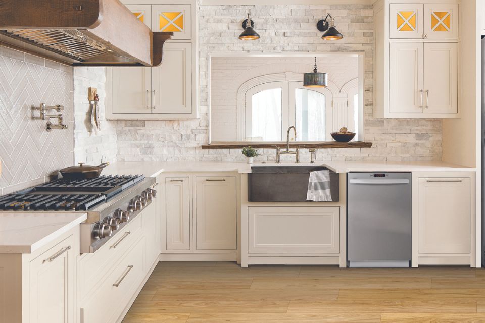 Light-toned flooring is a timeless way to open up any space. Luxury vinyl tile offers a wide variety of natural stone looks, and vinyl plank provides natural wood aesthetics that will breathe life into your home. Plus, luxury vinyl floors are highly durable, resisting scratches, dents, and spills without needing refinishing.