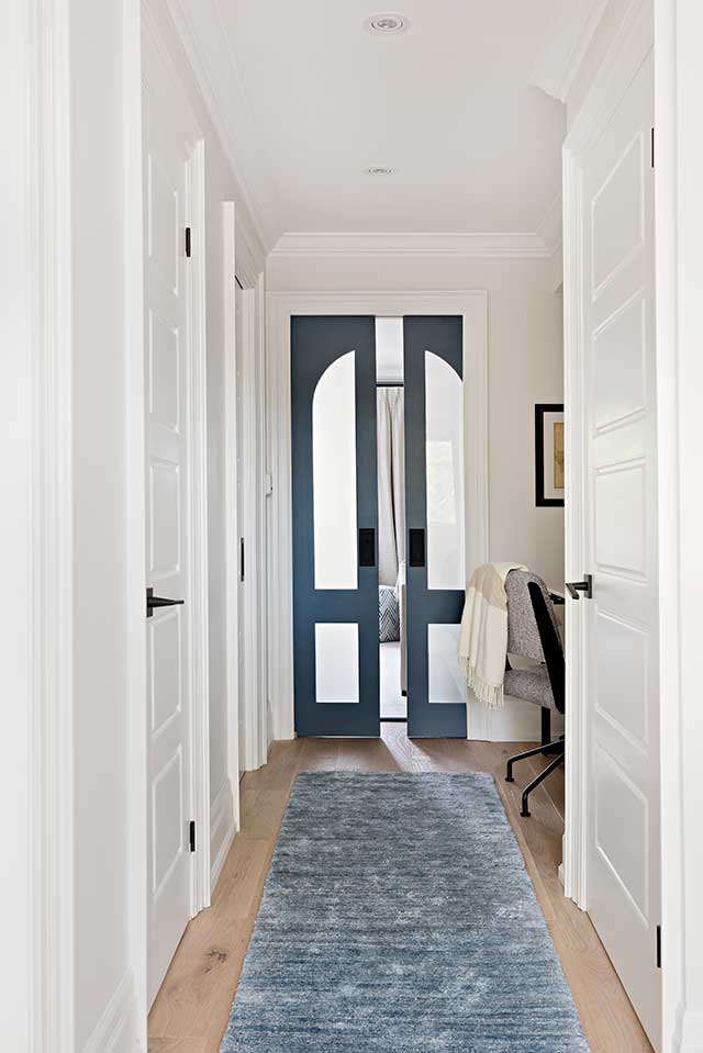 The psychology behind color has long been studied. Color can call to mind certain emotions, affect one’s mood, and deliver particular ambiances. Blue, for example, is said to evoke feelings of calmness and serenity, often being described as peaceful, tranquil, and secure. In the below home, gorgeous blue doors set the scene for a serene bedroom retreat by Rebecca Hay. In the space, the designer chose a subtle blue wallpaper that creates a beautiful, soft backdrop, and then worked in shades of royal and deep navy through furniture and décor. What room in your home could use a calming color palette?
