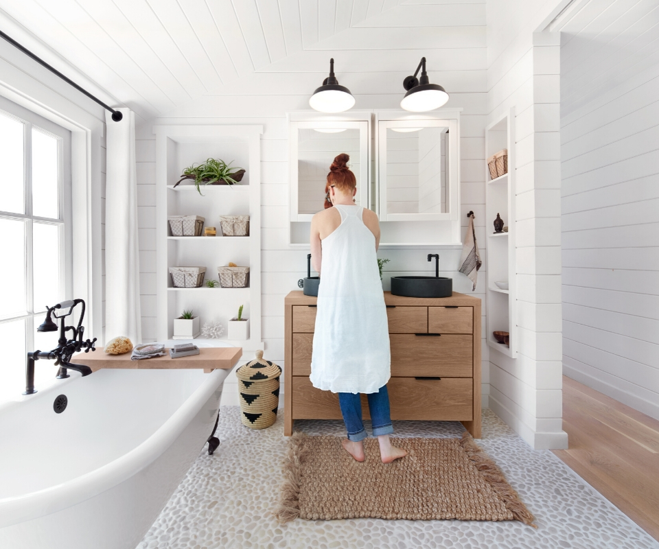 The project evolved as we worked through selections, and the home quickly assumed a strong design direction. Initially, the clients were drawn to more traditional farmhouse elements such as shaker cabinets and shiplap accents. However, the home drifted ever closer to a clean-line and minimalist look as we came to better understand the architecture, views, and massing of the spaces. This home demanded modern fittings and fixtures, and this shift toward modernism made it even more critical to add warmth and depth throughout while being ever mindful of maintaining balance and allowing the windows and views to always stay center stage.
