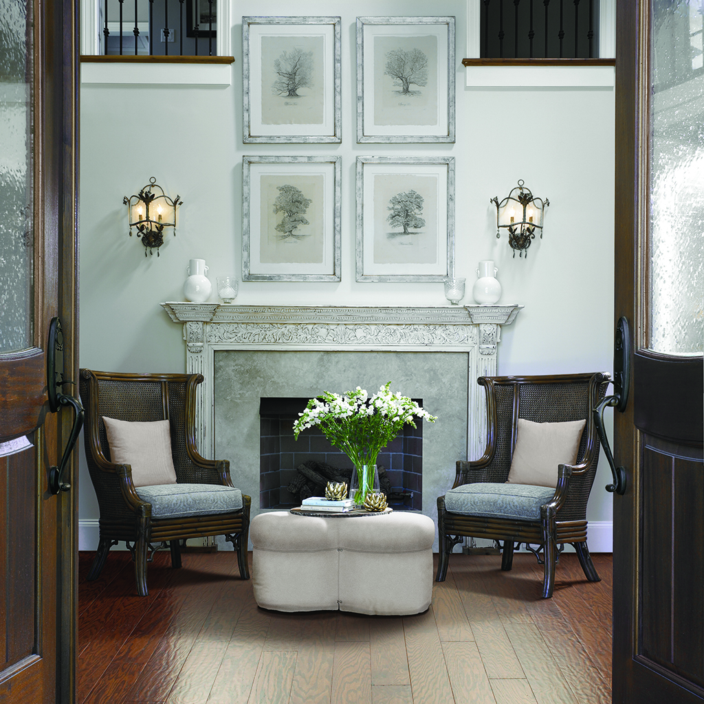 Wood flooring adds a warm feeling and looks great in any living room. Depending on how much the room is used, you can choose real hardwood or wood-look options like laminate, luxury vinyl, or tile. Wood-look flooring is a classic choice, giving your space a unique character with its grain and knots.
