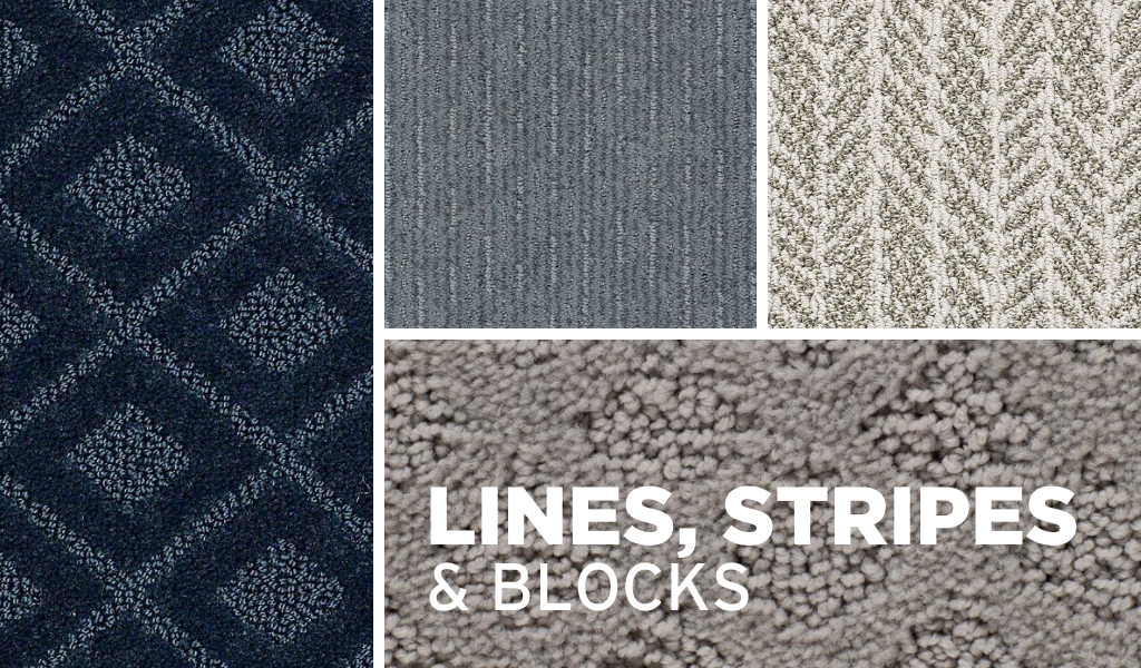 Geometric designs and straight lines are all the rage these days, so patterned wall-to-wall carpets with lines, stripes, and blocks are increasingly popular. These more structured carpet looks offer a modern appearance that is trendy and relevant to today's top designs.